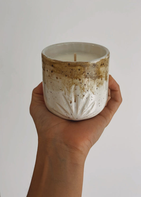 Inspired by nature's colours and textures, our handmade Earth Ceramic soy candles are eco friendly and can be reused as coffee/tea cups once the candle is finished.